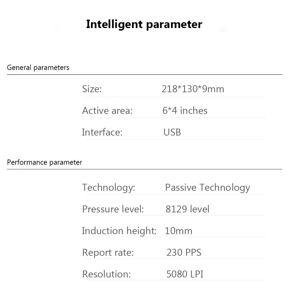 Features: Ultrathin and Ultra-small, 6*4 inch active area, only 2mm thick, light weight and portable. High sensitivity battery-free pen, 8192 level of pressure sensitivity passive stylus pen features to draw lines and brush of any
