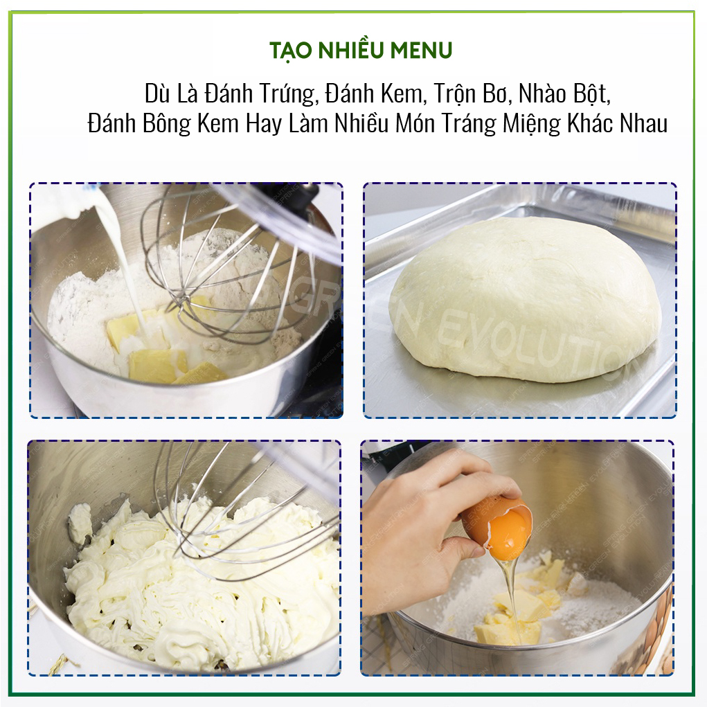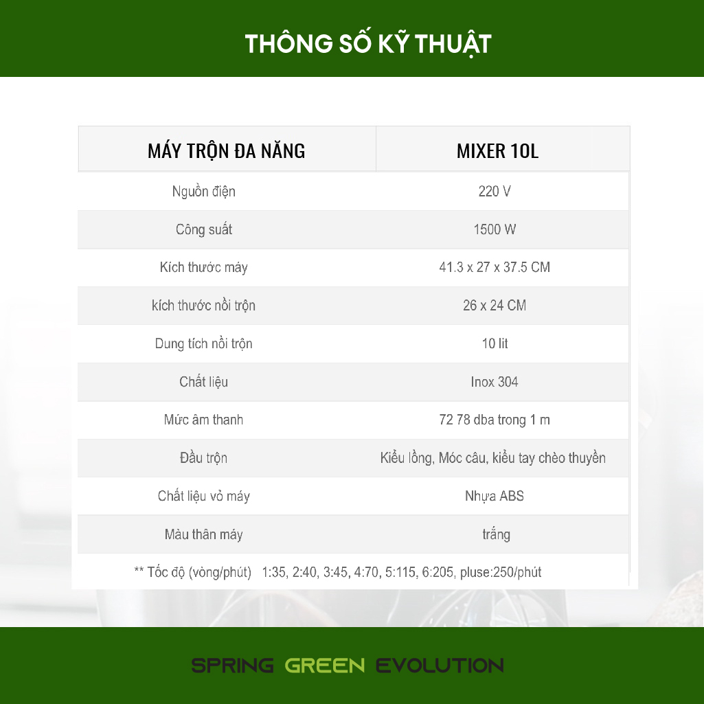 - Được thiết kế tản nhiệt tốt kéo dài tuổi thọ của động cơ MÁY TRỘN THỰC PHẨM ĐA NĂNG MIXER 10L Nếu bạn muốn tiết kiệm thời gian hay đang tìm hiểu về lý do lựa chọn hay đánh giá về máy trộn đa năng, đừng bỏ qua!!! Máy trộn đa năng SGE với chức năng đa dạng, nồi trộn inox 10 lít và công suất động cơ lên tới 1500 watt. SGE hiểu mong muốn của khách hàng và tầm quan trong của động cơ đối với 1 chiếc máy. Vì vậy động cơ của chúng tôi sử dụng lõi đồng nguyên chất 100% sử dụng bền bỉ, lâu dài và hiệu quả. Bên cạnh đó, tất cả các bộ phận tiếp xúc với thực phẩm đều được làm từ thép không gỉ 304. TÍNH NĂNG MÁY TRỘN BỘT MIXER 10L