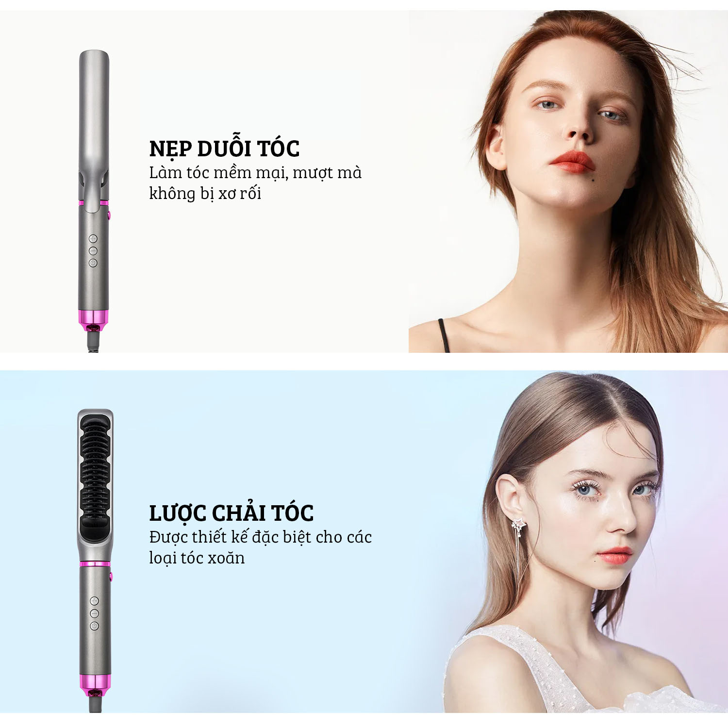 - Đa Chức Năng: Máy DAMAS 5 trong 1 kết hợp nhiều tính năng trong một. Bạn có thể sử dụng nó để uốn tóc, duỗi tóc, tạo kiểu bồng bềnh, và thậm chí là làm tóc xoăn.