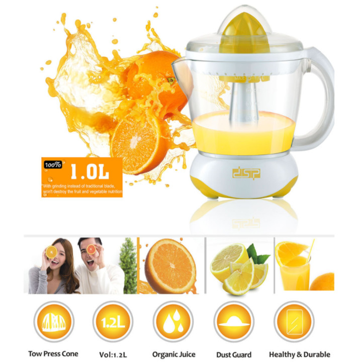 Máy vắt cam DSP KJ1002 bằng nhựa PP, ABS bền đẹp, chắc chắn, dung tích 1000 ml - Hàng nhập khẩu Máy Vắt Cam DSP KJ1002 công suất 40W, dung tích 1 lít, mang đến cho bạn