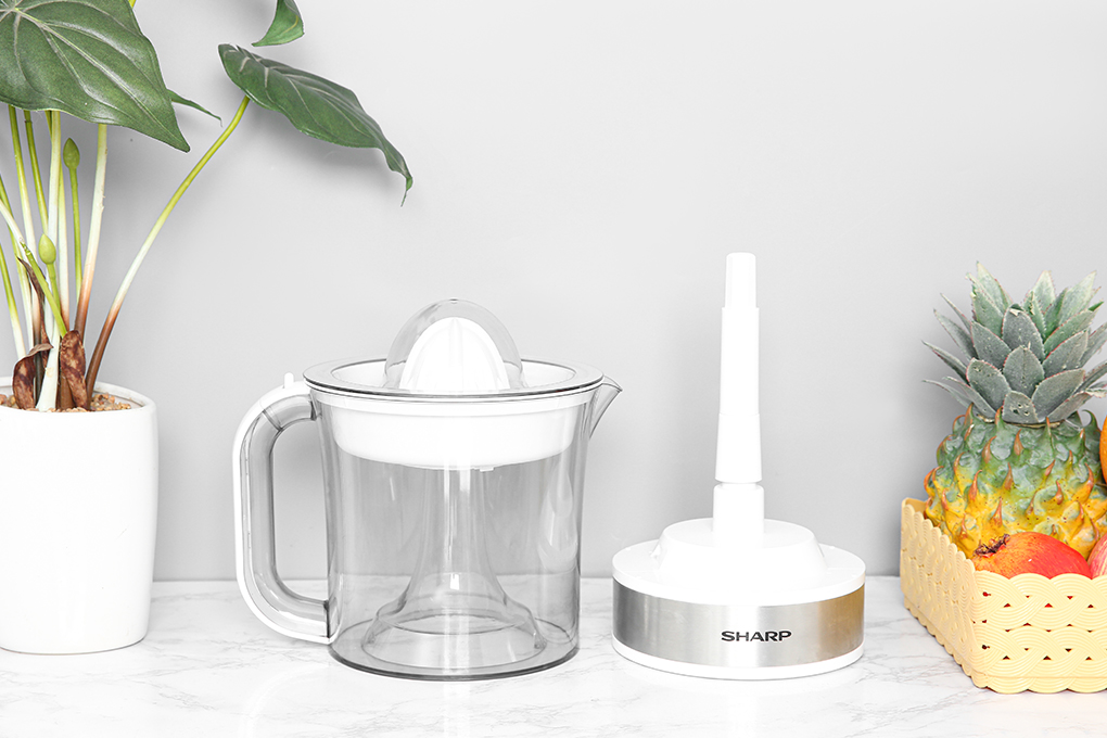 Máy vắt cam Sharp thiết kế gọn nhẹ, màu trắng sáng tươi trẻ, có tay cầm chắc chắn Chuyên dụng để vắt các loại hoa quả họ cam như cam, bưởi, quýt, chanh,… đáp ứng nhu