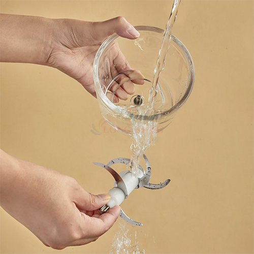 - 6 lưỡi dao chữ S inox 420J không gỉ, động cơ 200W giúp xay nhuyễn thực phẩm