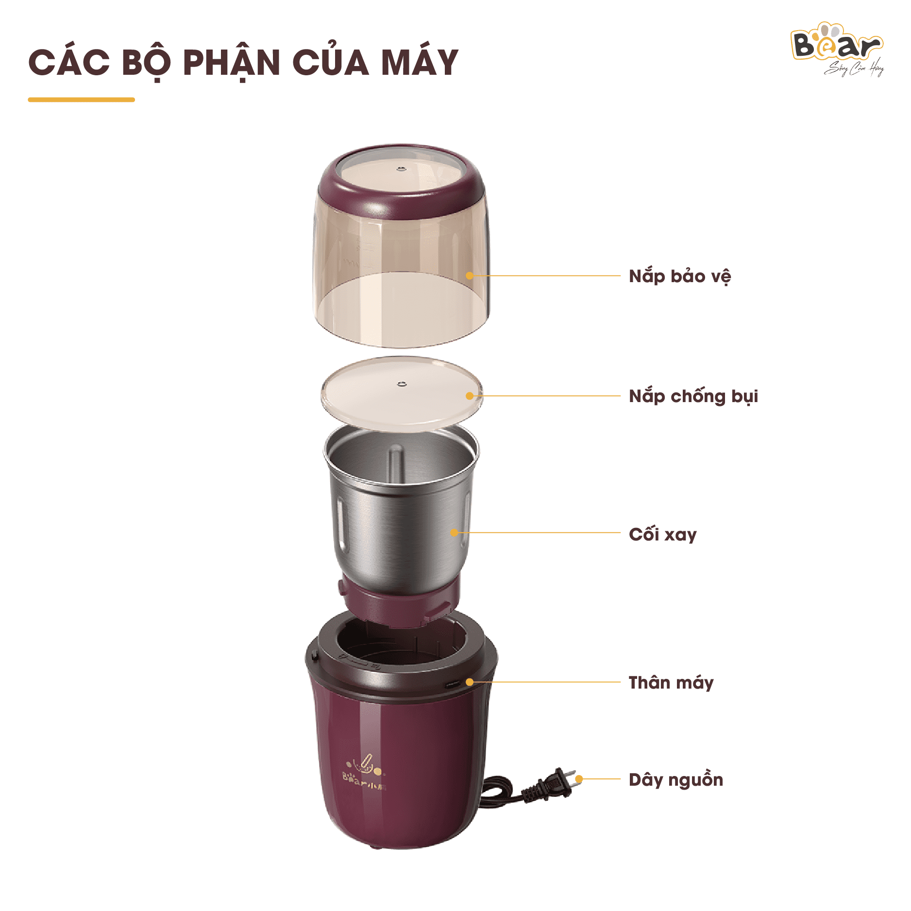 ✨Máy Xay Cà Phê, Máy Xay Hạt Thực Phẩm Khô Đa Năng BEAR MDJ – A02G3 Chế Độ Xay Cực Êm Dung Tích 200 ML Công Suất 200 W- Hàng Chính Hãng