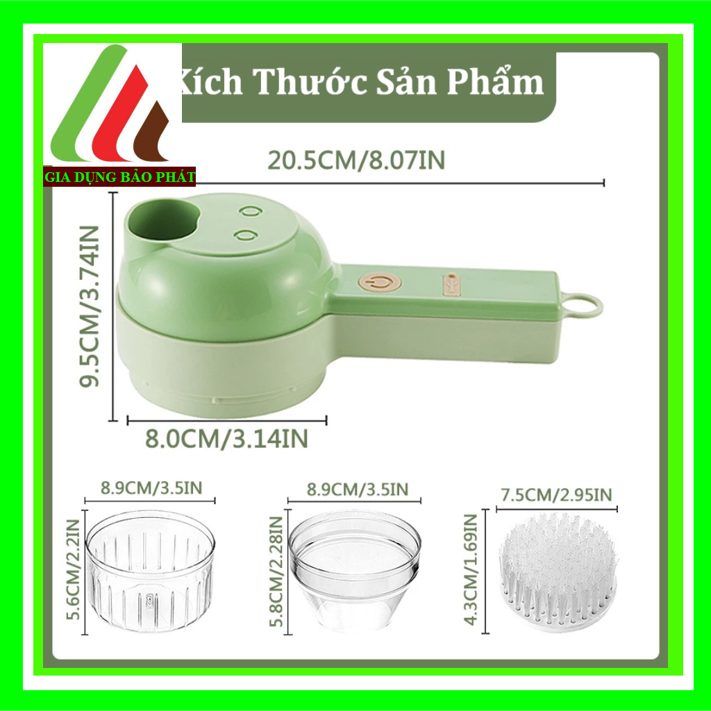 Máy xay đa năng cầm tay 4in1, máy cắt thái hành tỏi ớt kèm chổi vệ sinh cọ rửa siêu tiện lợi
