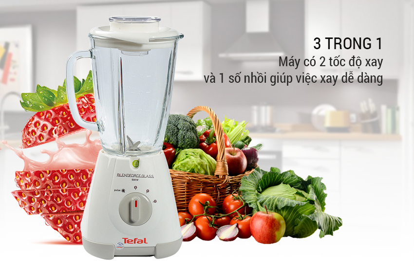 Máy xay sinh tố Tefal BL312 3 trong 1 có thể xay nhuyễn được nhiều loại thực phẩm khác nhau như: xay sinh tố, đánh trứng, cắt rau củ quả. Máy có 2 tốc độ xay và 1 số nhồi giúp việc xay