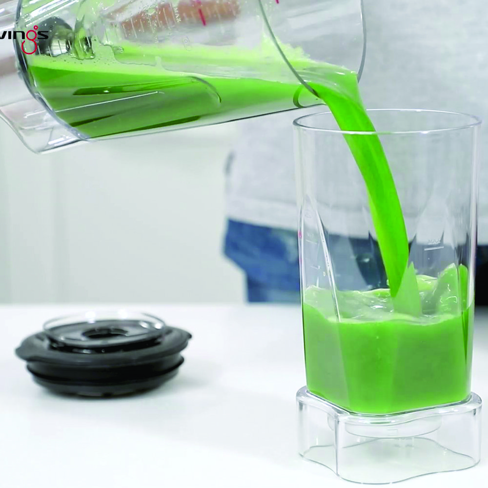Lấy cối xay sinh tố ra khỏi máy và mở nhẹ van cao su chân không của nắp cối xay để xả áp suất trước khi mở nắp. Rót sinh tố ra ly và thưởng thức.