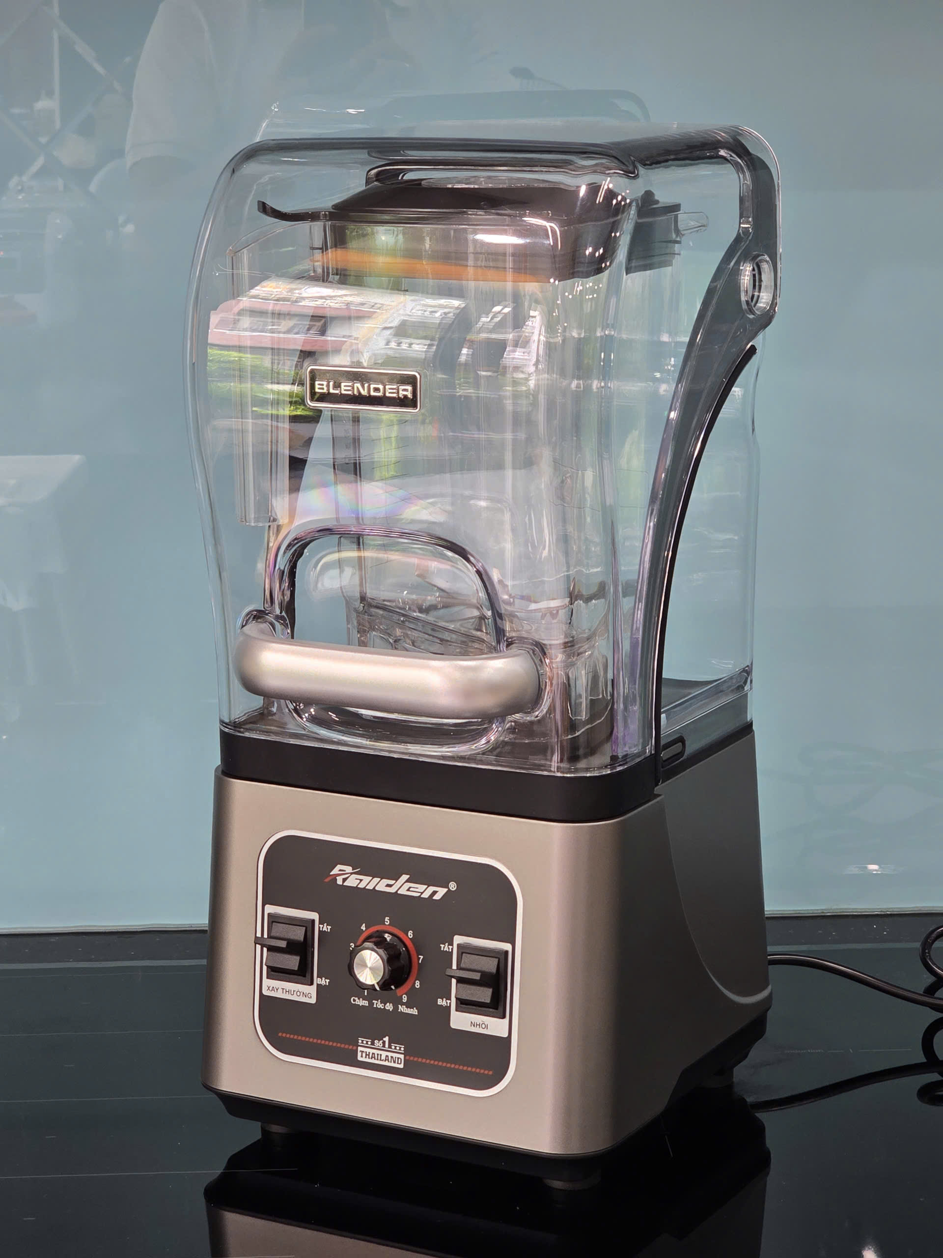 Máy xay sinh tố công nghiệp 2680W Raiden cối nhựa kháng vỡ 3L, chống ồn khi xay BH 24 Tháng -Đặc biệt có cối chống ồn bên ngoài. - Xay đá -