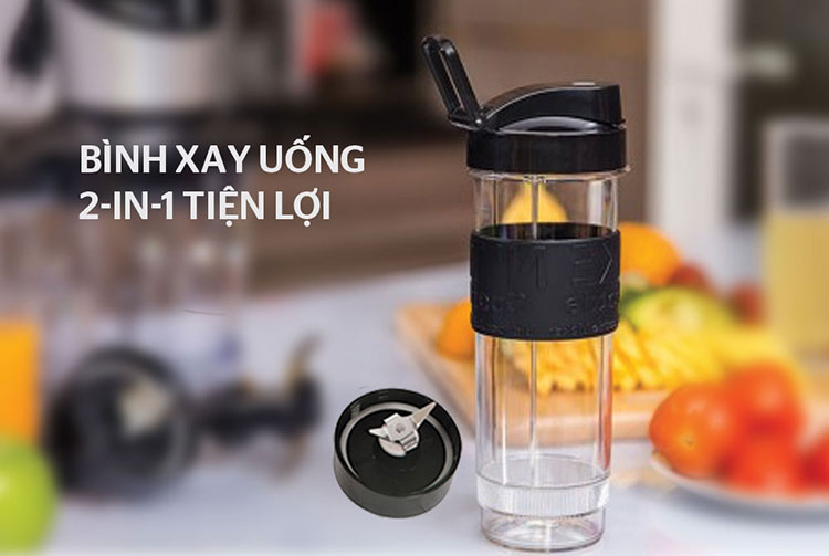 Bình nhựa cao cấp, tiện lợi Ngoài ra, sản phẩm còn kèm theo bình nước cao cấp, làm bằng nhựa tritan an toàn với sức khỏe. Bạn có thể sử dụng để đựng sinh tố sau khi xay hoặc đựng nước để sử dụng bên ngoài cũng rất tiện lợi.