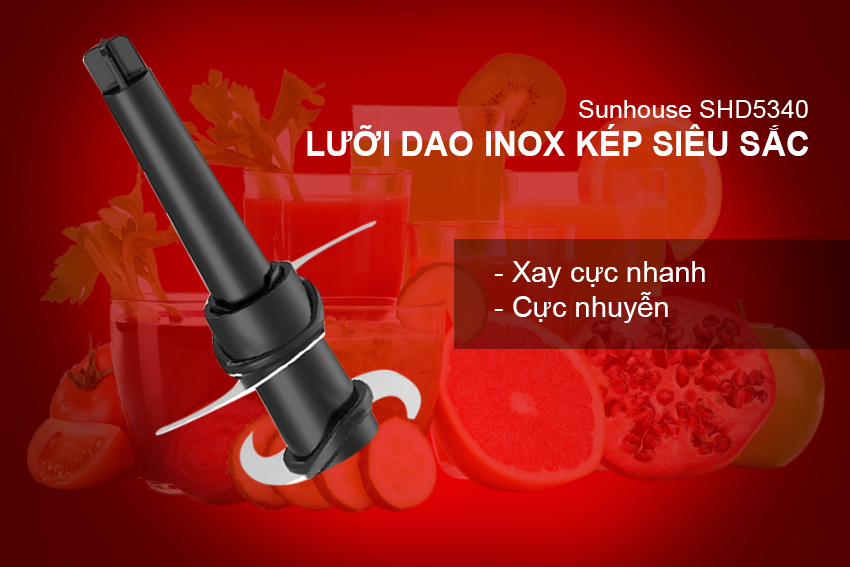 Lưỡi dao inox kép siêu sắc SHD5340 được trang bị lưỡi dao xay bằng inox sắc bén, thiết kế kép (2 tầng) giúp xay thực phẩm cực nhanh, cực nhuyễn so với máy xay thông thường.