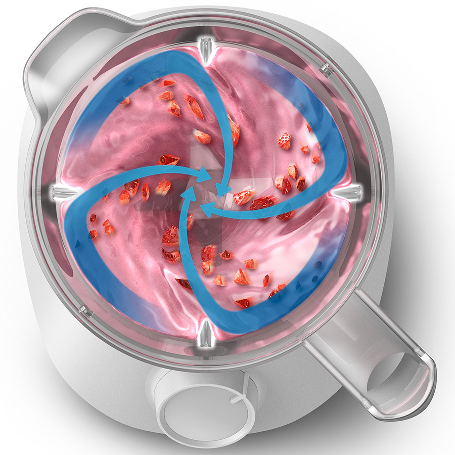Công nghệ xay ProBlend độc đáo kết hợp hoàn hảo 3 công nghệ, thiết kế tùy chỉnh để đảm bảo xay mịn, không vón cục chỉ trong 45 giây. Động cơ 450W truyền động để luân chuyển đều tất cả nguyên liệu được xay, trong khi thiết kế lưỡi dao xay cải tiến với hình dạng đặc biệt để tăng tối đa diện tích cắt. Một điểm cũng quan trọng không kém là gân cối được thiết kế độc đáo để liên tục đưa nguyên liệu vào lại luồng xay.