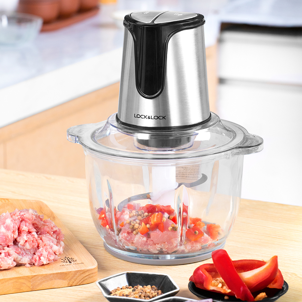 Sản phẩm có cối xay được gia công từ thủy tinh cao cấp, độ bền cao, chịu lực tốt, không chứa chất độc hại, an toàn khi sử dụng, bảo vệ sức khỏe người dùng. Với dung tích 2L, sức chứa tốt, lòng cối sâu, dùng để xay thịt và rau củ, đáp ứng tốt yêu cầu của người dùng. Đặc biệt, phần thân trên của máy xay thịt Lock&Lock được gia công từ thép không gỉ, hạn chế bám bẩn, dễ dàng lau chùi sau khi sử dụng.