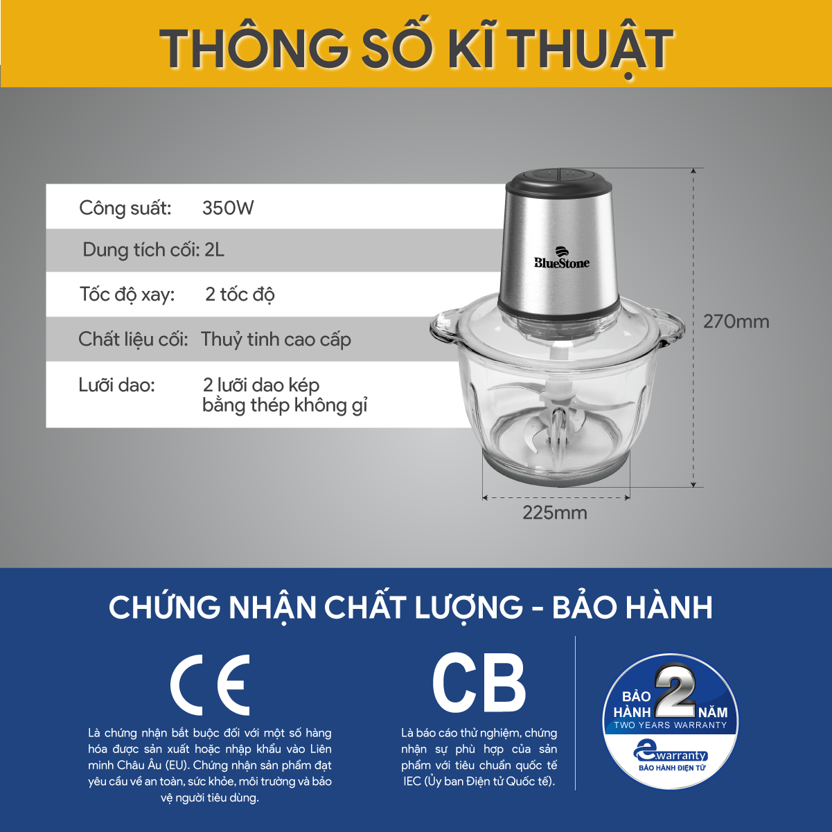 - Thông số kỹ thuật máy xay thịt BlueStone CHB-5145