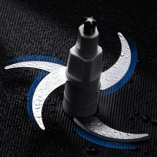 - Vận hành với công suất 300W cùng lưỡi dao bằng inox 420 xay nhuyễn, mịn thực phẩm.
