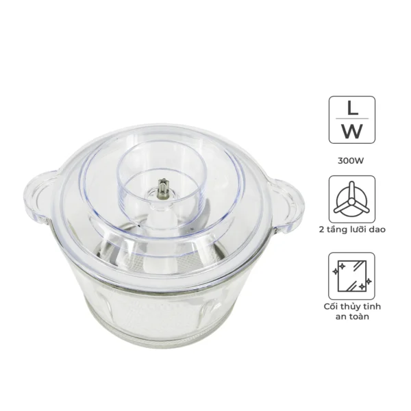 Công suất: 300 W - Chức năng chính: + Xay gia vị: Hành, tỏi, ớt, hạt ngũ cốc +Xay thịt - Cối xay: 1 cối xay thịt 2 L - Chất liệu cối chính: Cối