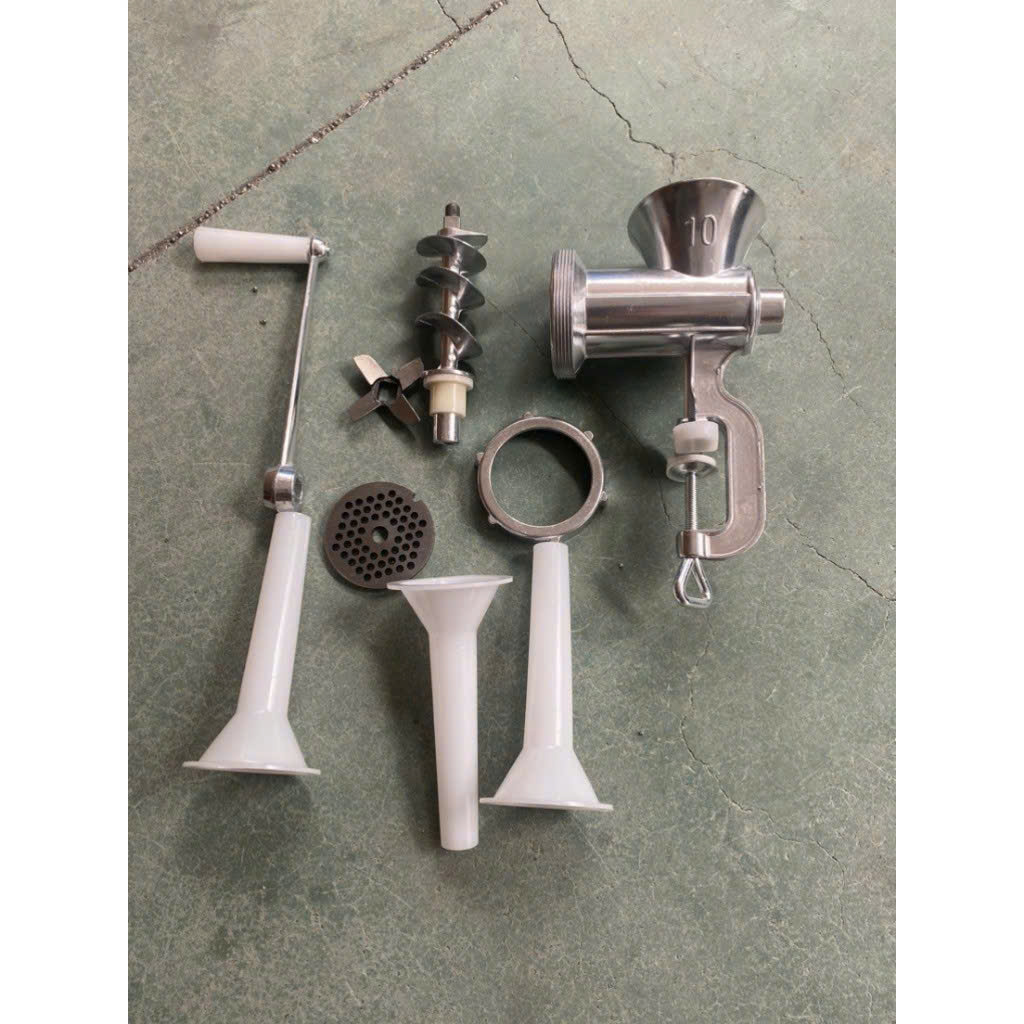 bộ Gồm 1 máy xay, và bộ phụ kiện đi kèm máy và phễu nhồi súc xích như hình ảnh.