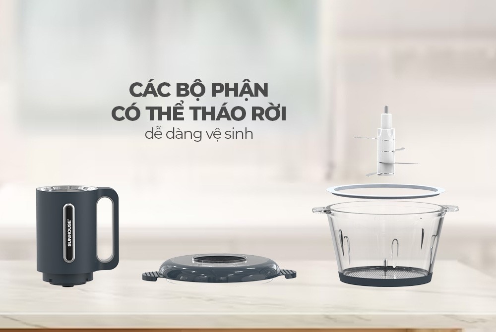 Máy xay thịt SUNHOUSE SHD5403 có thiết kế màu ghi xám hiện đại, thời thượng, phù hợp với mọi không gian bếp. Cối xay bằng chất liệu thủy tinh cao cấp, bền bỉ và an toàn tuyệt đối cho sức khỏe.