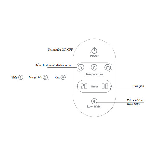 Thiết bị sẽ hoạt động với chương trình mặc định: Nhiệt độ ở mức trung bình với thời gian hoạt động 20 phút.