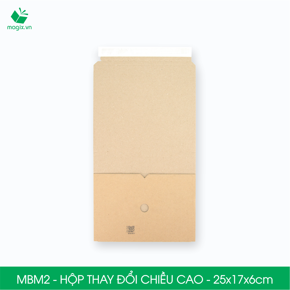 QUY CÁCH KỸ THUẬT Kích thước sản phẩm MBM1- 22x16x5 cm MBM2 - 25x17x6 cm MBM3 - 28x19x7 cm MBM4 - 32x22x8 cm MBM5 - 36x27x7 cm MBM6 - 41x32x7 cm Chất liệu: Carton sóng