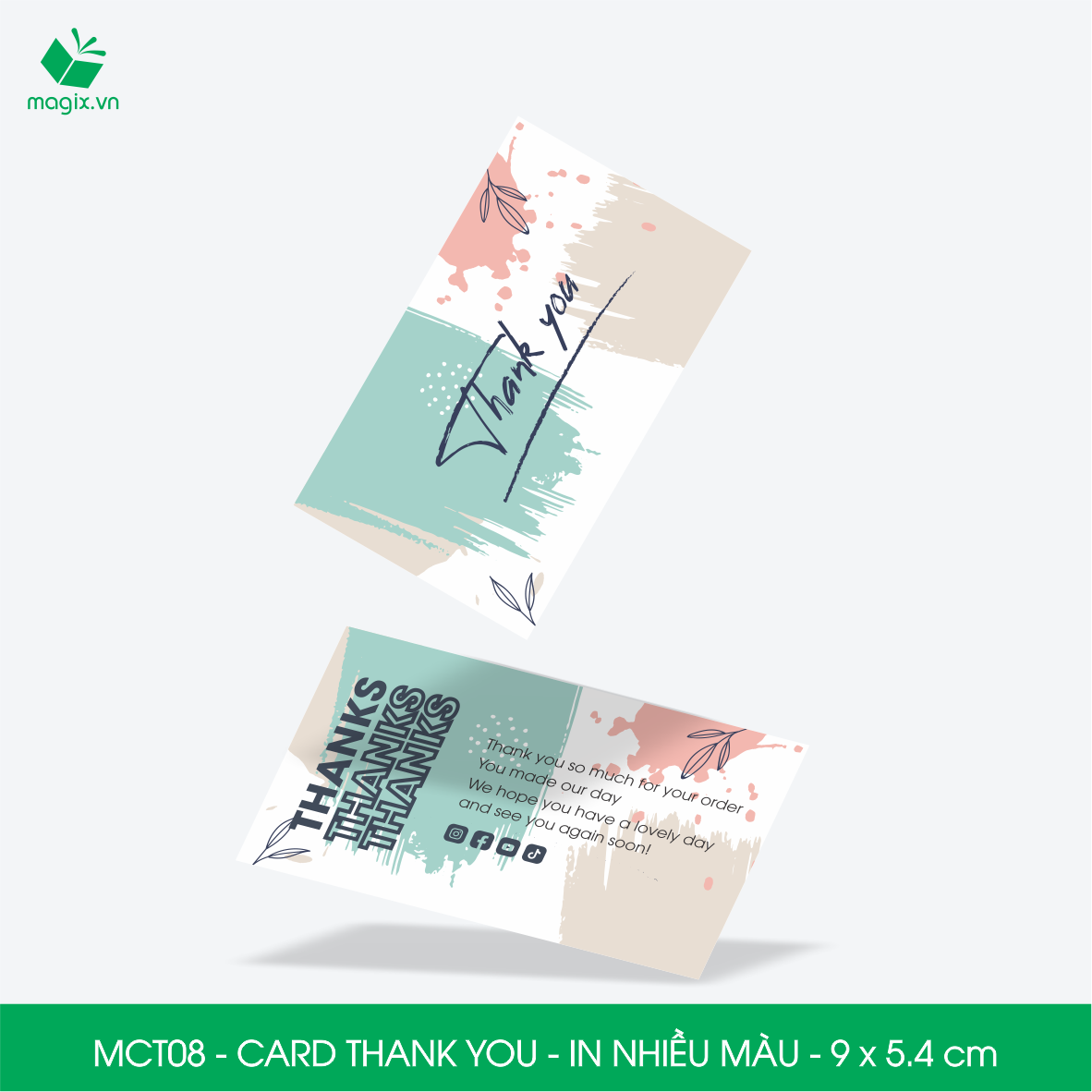Card Thank You - Thiệp cảm ơn làm từ giấy C300 và phủ màng mờ 2 mặt mang lại sự cứng cáp và sang trọng cho sản phẩm. Một tấm thiệp cảm ơn đẹp mắt, ấn tượng và ý nghĩa sẽ giúp doanh nghiệp ghi điểm trong mắt khách hàng, đối tác, đồng thời góp phần nâng cao hình ảnh thương hiệu.