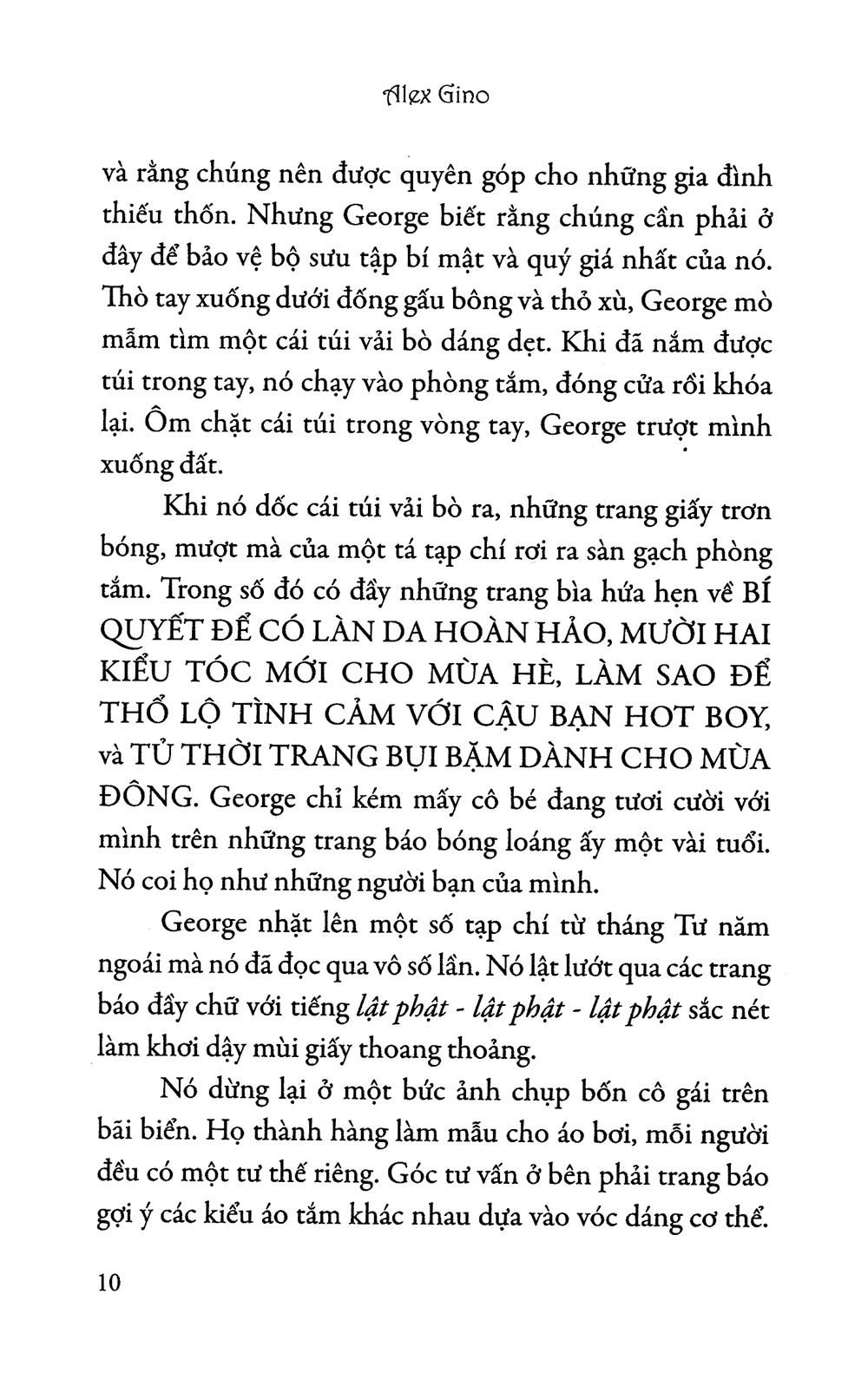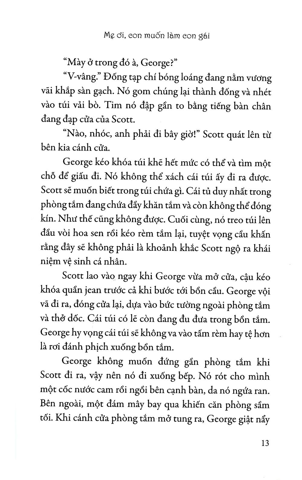Cô bé George là một người như thế. Em phải gồng mình lên để làm một đứa con trai như mọi người vẫn tưởng. Em phải im lặng chịu đựng những đứa bắt nạt tai quái ở trường. Em chẳng thể nói với ai những đau đớn dằn vặt đang từng ngày giằng xé tâm hồn mình...