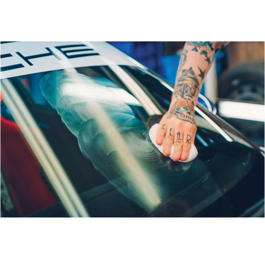 • Đổ một lượng xi vừa phải vào mút chuyên dụng rồi lau kính, nên dùng nước rửa kính để rửa lại. Sau đó sẽ có một mặt kính sáng bóng hoàn hảo.