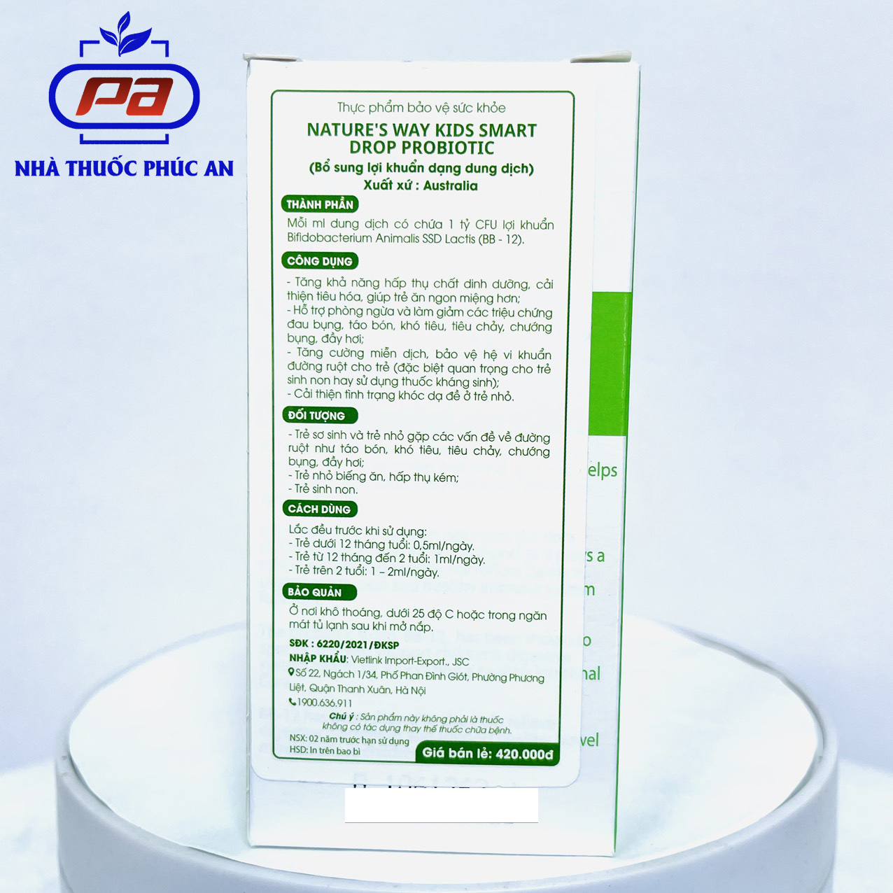NATURE'S WAY MEN VI SINH KIDS SMART DROPS PROBIOTIC 20ML - SẢN PHẨM GIÚP BỔ SUNG MEN VI SINH