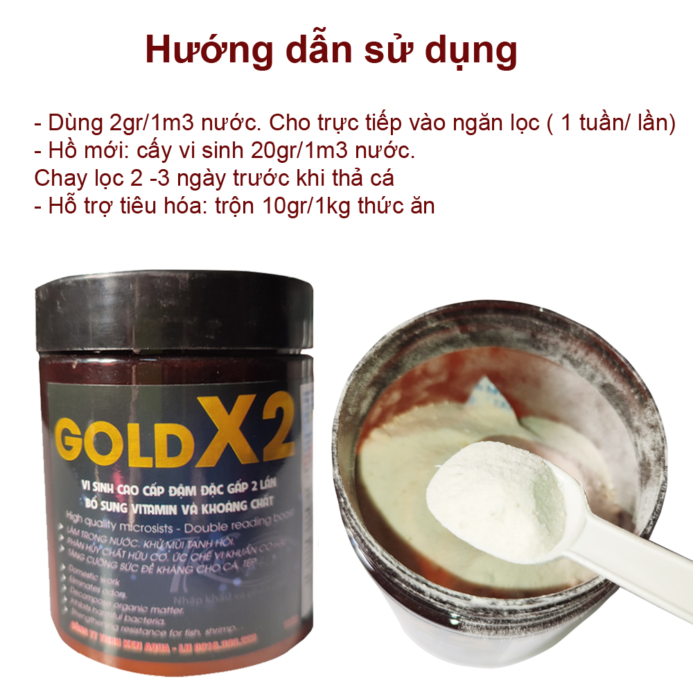 - Tăng cường dinh dưỡng, hỗ trợ tiêu hóa bằng cách trộn với thức ăn, giúp cá lớn nhanh, lên màu đẹp, phát triển khỏe mạnh Cách dùng vi sinh hồ cá Goldx2 :