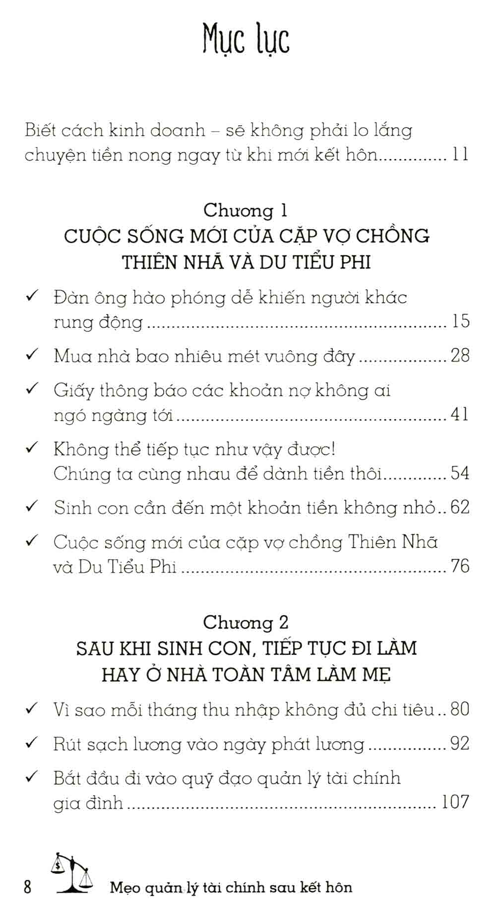 Cuốn sách không chỉ đơn thuần là hướng dẫn lập kế hoạch tài chính, mà còn cung cấp những chiến lược để quản lý tài sản chung sau khi kết hôn và xây dựng một tương lai tài chính vững chắc. Từ cách tích luỹ tiền bạc cho những mục đích dài hạn như mua nhà, nuôi dưỡng con cái đến việc thích nghi với các thay đổi kinh tế, sách cung cấp cho độc giả những công cụ cần thiết để đối mặt với những thách thức tài chính trong cuộc sống hằng ngày.