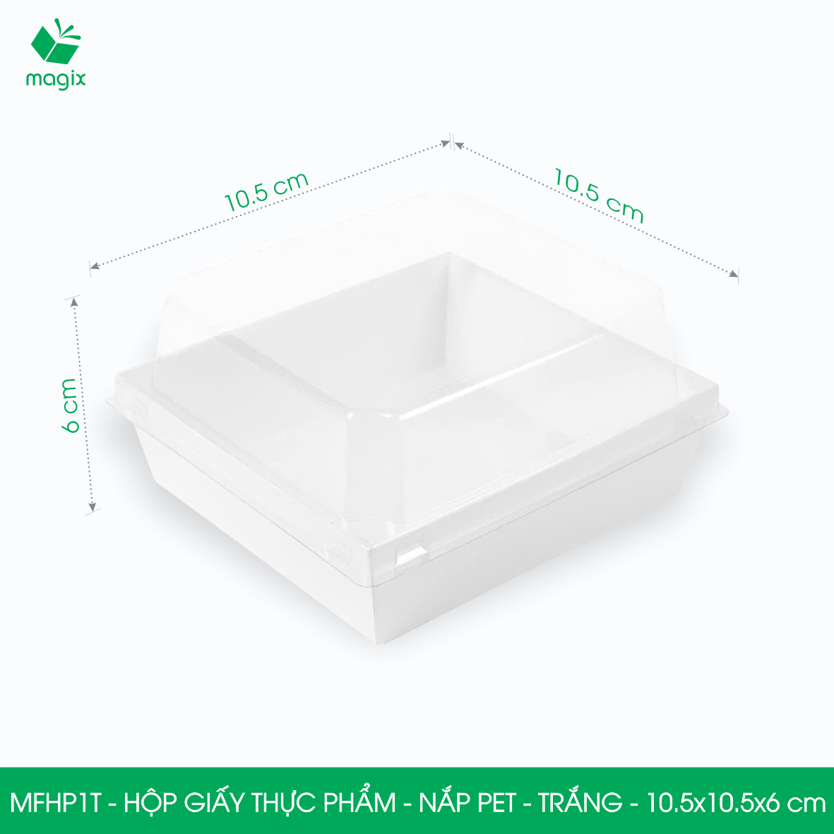 ✨MFHP1T - 10.5x10.5x6 cm - 50 hộp giấy thực phẩm màu trắng nắp Pet, hộp giấy vuông đựng thức ăn, hộp bánh nắp trong