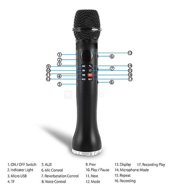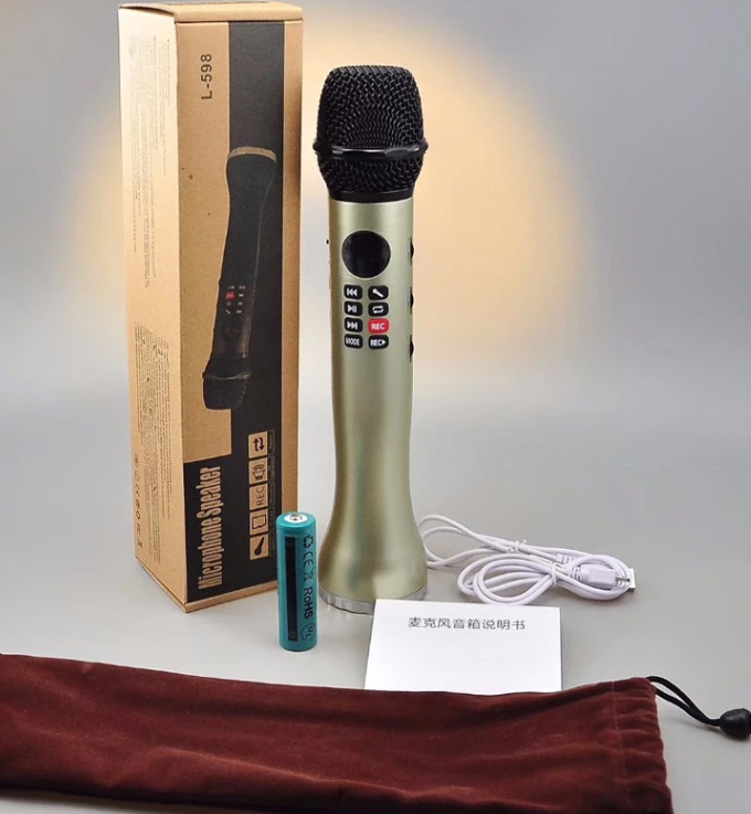 Micro karaoke bluetooth L-598 cho phép bạn hát và ghi âm giọng nói của bạn ở mọi nơi. Micro chất lượng cao mang lại âm thanh rõ ràng và chất lượng. Bạn có thể sử dụng loa micro này để hát bài hát cho dù ở KTV hay ở nhà. Tính năng, đặc điểm micro chất lượng cao sẽ lọc tiếng ồn và không khí. Một phím để ghi lại chức năng, lắp thẻ TF, nhấn nút REC để ghi lại âm thanh (không có card TF). Kết nối micro L-598 với điện thoại của bạn qua bluetooth, bạn có thể hát những bài hát yêu thích của mình mọi lúc mọi nơi.