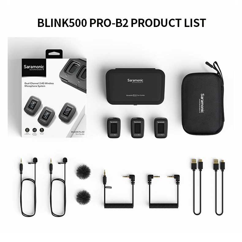 Micro Thu Âm Không Dây Saramonic Blink 500 Pro B2 (TX + TX + RX) 2 Phát + 1 Thu - Chính hãng