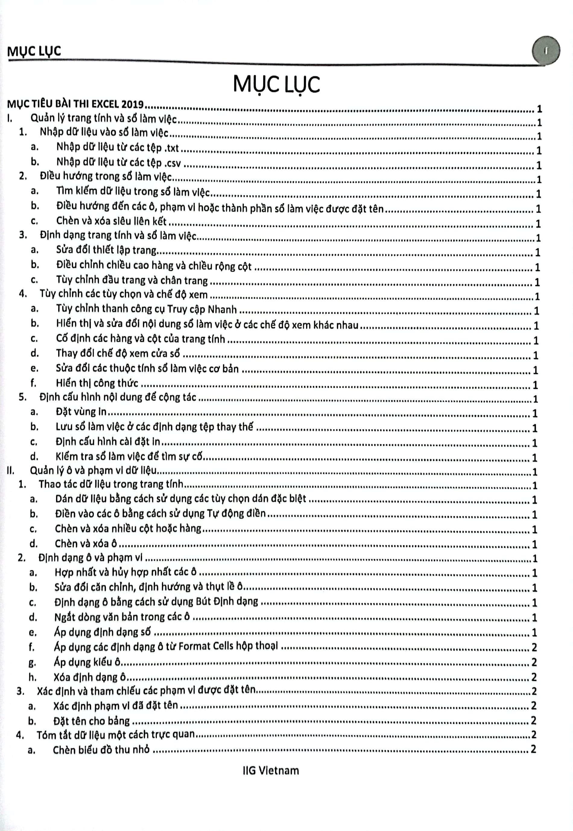 Sách MOS Excel 2019 được chia thành nhiều bài học, mỗi bài học đề cập đến một chủ đề cụ thể, bao gồm: