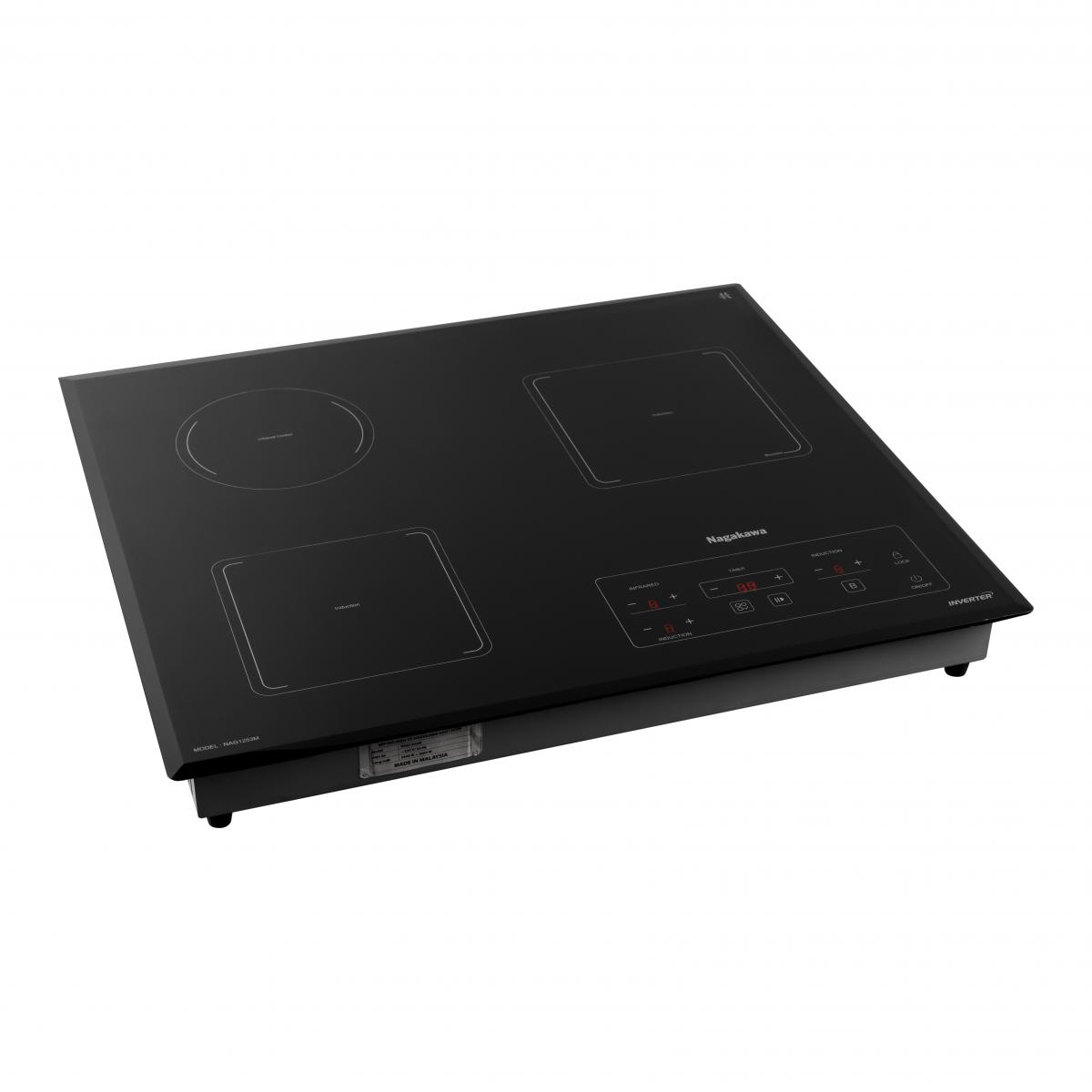 Bếp 3 lò điện từ hồng ngoại Inverter Nagakawa NAG1253M được sản xuất và nhập khẩu từ Malaysia. Bếp có 2 vùng nấu từ và 1 vùng nấu hồng ngoại với các mức công suất khác nhau giúp người nội trợ thỏa sức chế biến thực phẩm từ chiên, xào, ràn, hầm, luộc hấp. Đặc biệt, bếp còn đem đến trải nghiệm nấu ăn thoái mái, đầy hứng khởi bằng nhiều tính năng an toàn thông minh.