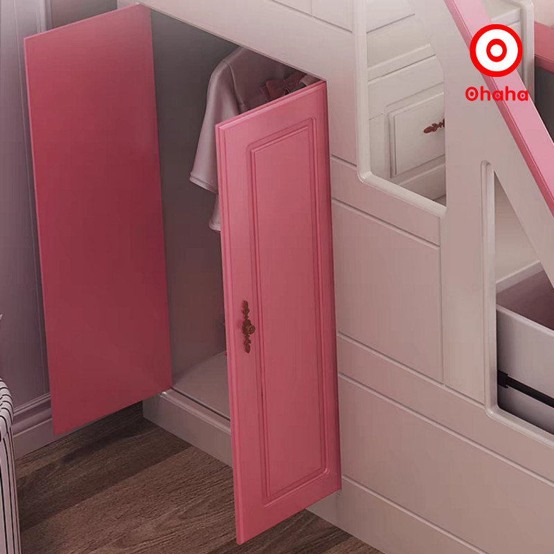 Giường tầng thông minh cao cấp Ohaha 3 tầng có cầu trượt - GTCC032 là mẫu giường tầng cao cấp được rất nhiều khách hàng yêu thích bởi thiết kế mang phong cách ngọt ngào tích hợp cùng nhiều tính năng thông minh như hộc cầu thang, giường phụ, cầu trượt, tủ áo,