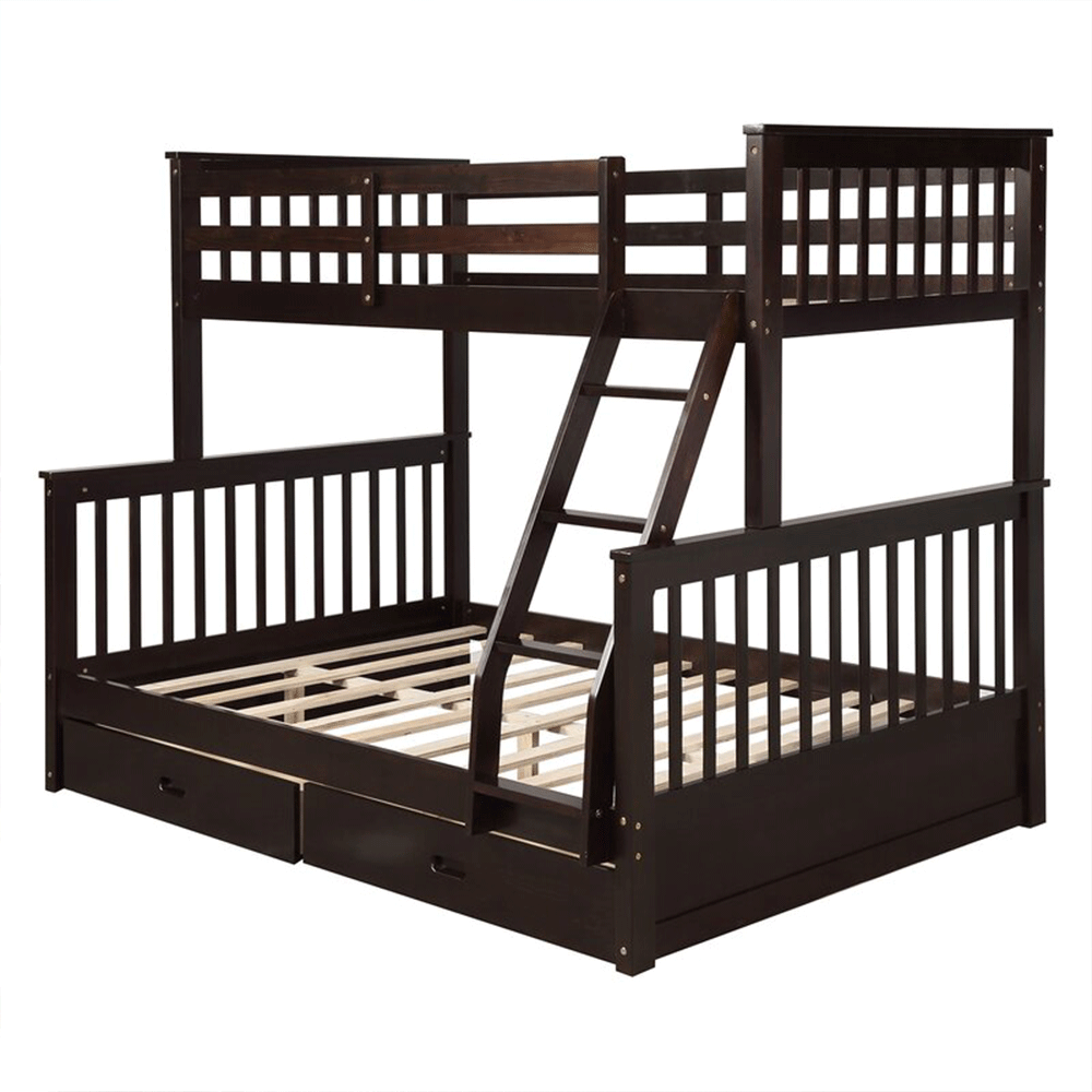 Giường tầng xuất khẩu Exeter có kích thước lọt lòng giường trên/dưới là 100x193 cm / 140x193 cm, phủ bì 206x146x165 cm. Khoảng cách giữa 2 tầng là 93 cm, cầu thang có thể đổi