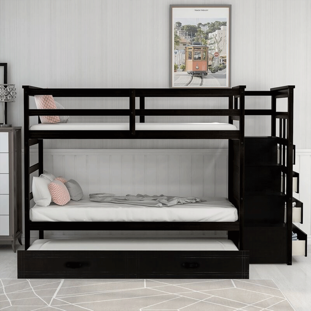 Giường tầng không chỉ giúp tiết kiệm không gian, mà còn là thế giới riêng của các bé. Giường tầng Newport được thiết kế tối giản với 2 tầng có kích thước bằng nhau, thang rời tích hợp ngăn kéo đựng đồ tiện lợi. Khoảng cách giữa 2 tầng rộng rãi không sợ đụng đầu, kể cả với người lớn. Chất liệu gỗ thông xẻ sấy nhập khẩu được gia công tỉ mỉ, kết cấu chắc chắn, giúp các bé vui chơi an toàn và có những giấc ngủ ngon.