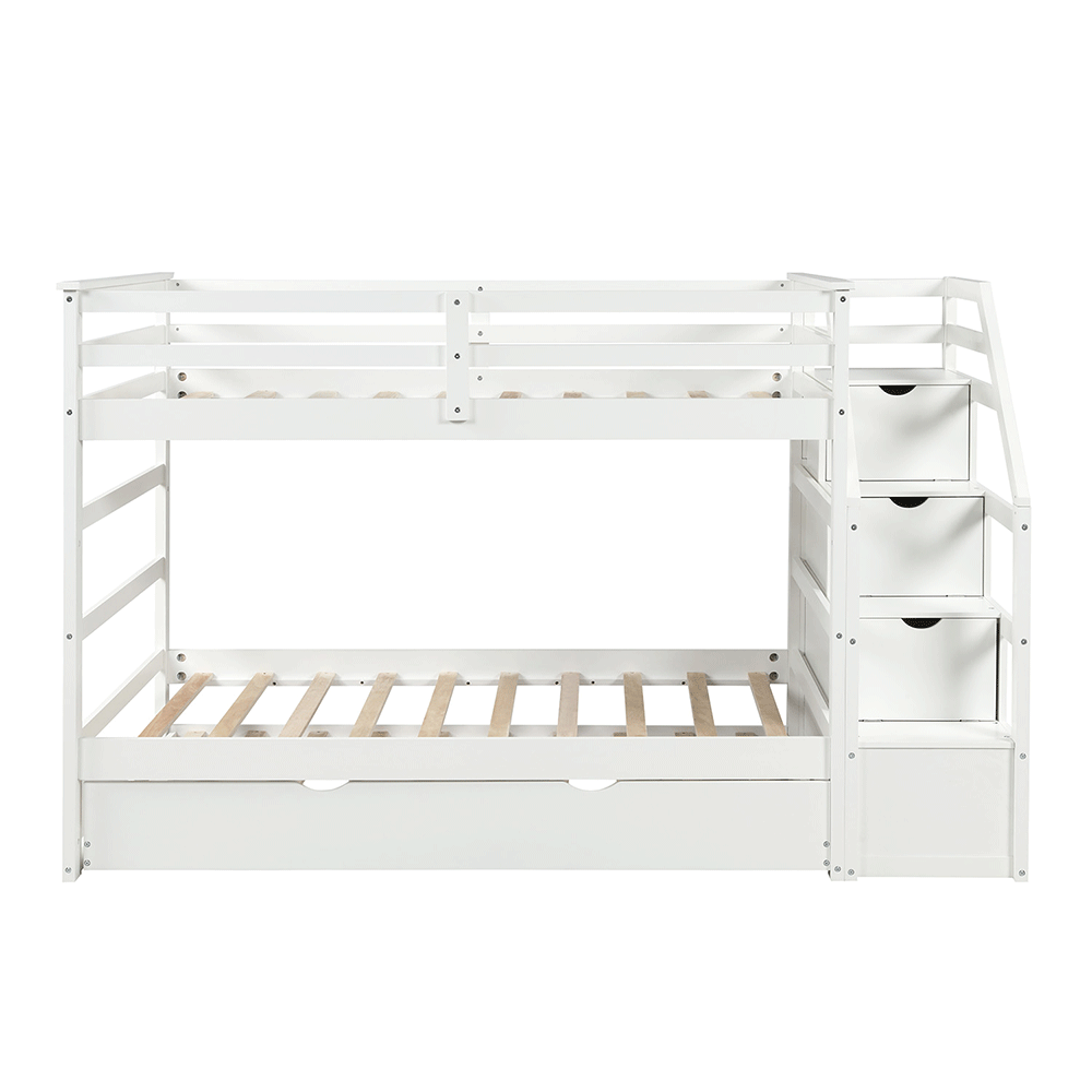 Giường tầng thang hộp XK Newport 1m/1m có kích thước lọt lòng giường trên/dưới là 100x193 cm, phủ bì 251x110x160 cm. Khoảng cách giữa 2 tầng là 97 cm, cầu thang hộp rộng 46cm có thể di động đặt bên phải hoặc bên trái tùy ý. Chân trụ dày 30x50 mm chịu lực. Thang giường được làm từ gỗ Plywood chắc chắn, dẻo dai với 13 thanh (cung sinh) bắt vít. Đặc biệt, các tầng được thiết kế tháo rời và có thể tách riêng thành 2 giường độc lập. Tùy nhu cầu, Quý khách có thể chọn loại chỉ giường để gầm thông thoáng, thêm ngăn kéo để đồ hay thêm giường kéo tăng chỗ ngủ. Kích thước DxRxC cả 2 hộc kéo là 95x11x40 cm, giường kéo là 100x185 cm. Giường tầng không chỉ giúp tiết kiệm không gian, mà còn là thế giới riêng của các bé. Giường tầng thang hộp XK Newport được thiết kế tối giản với 2 tầng có kích thước bằng nhau, thang rời tích hợp hộc đựng đồ tiện lợi. Khoảng cách giữa 2 tầng rộng rãi không sợ đụng đầu, kể cả với người lớn. Chất liệu gỗ thông xẻ sấy nhập khẩu được gia công tỉ mỉ, kết cấu chắc chắn, giúp các bé vui chơi an toàn và có những giấc ngủ ngon. Miễn phí lắp đặt tại TP.HCM, Bình Dương, Đồng Nai.