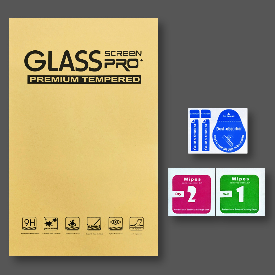 - Gồm : 1 miếng dán cường lực, khăn lau, miếng dán lấy bụi