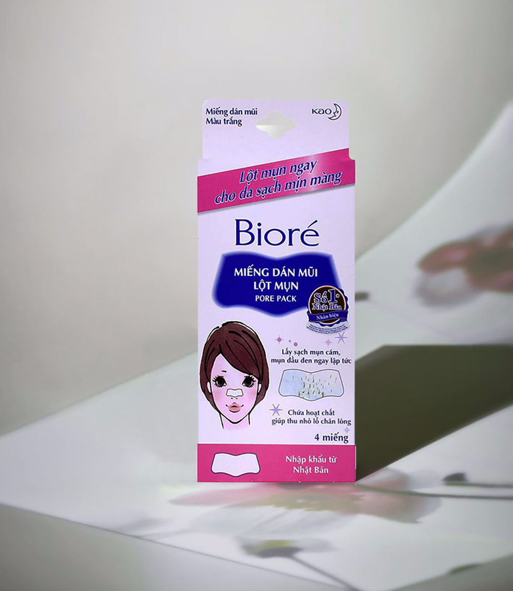 - Miếng Dán Mũi Lột Mụn Biore 4 Miếng - "trợ thủ đắc lực" giúp cho việc làm sạch mụn cám và mụn đầu đen (sợi bã nhờn) vùng mũi sẽ trở nên thật đơn giản, chỉ mất khoảng 15-20 phút sử dụng là bạn đã nhận thấy được sự khác biệt: lỗ chân lông được làm sạch sâu, lấy đi hết các cặn bẩn và dầu thừa bít tắc, da mềm mịn hơn với lỗ chân lông được se nhỏ.