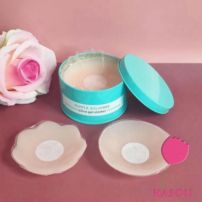 ✨Miếng Dán Ngực Silicon Cao Cấp Hộp 5 Đôi Loại Có Nhũ Che Đầu Ti (Hộp Sắt)