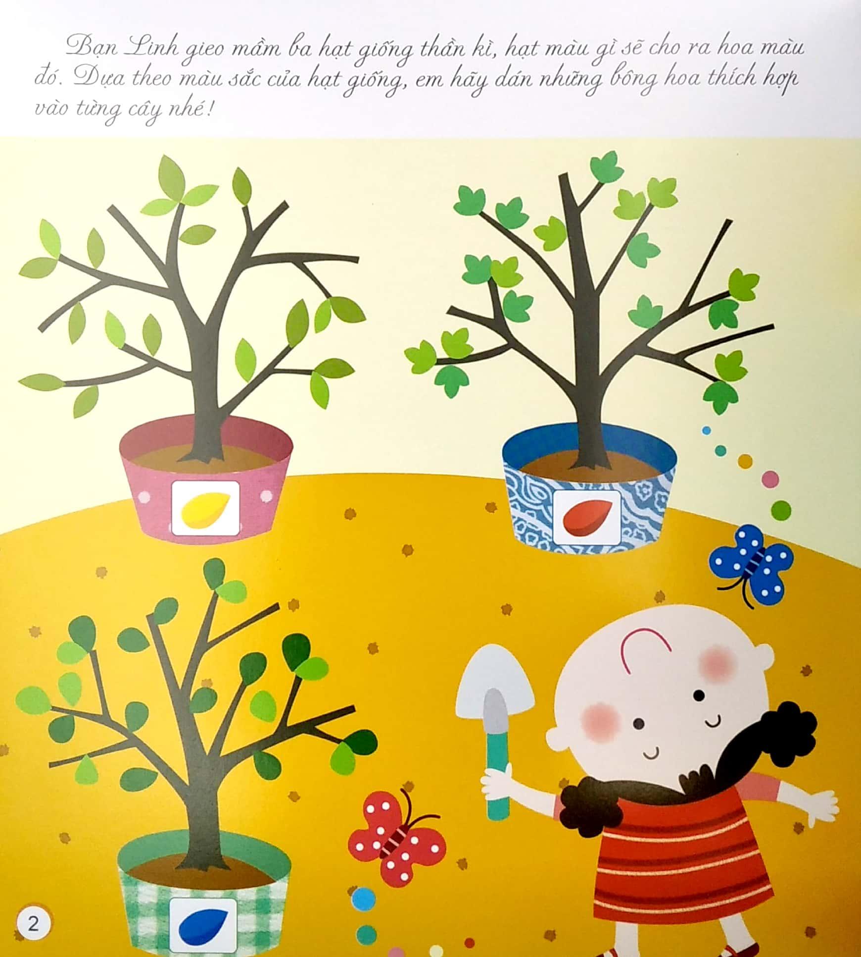 Chủ đề thứ ba,Phát triển chỉ số sáng tạo (CQ),hứa hẹn sẽ đem đến các bài tập mới mẻ hơn cả khi trẻ được dán những chiếc thuyền nhiều màu sắc trên mặt nước, giúp chị em My trồng rau, dán những ngôi nhà xinh xắn lên bãi cỏ để thành phố thêm đẹp và đông vui, dùng họa tiết trang trí cho chiếc váy thêm đẹp, cùng chơi trò thổi bong bóng. Trẻ còn có thể giúp bạn xâu một chiếc vòng cổ xinh xắn để tặng mẹ từ những vỏ sò, vỏ ốc nhặt được, trang trí thêm vảy cho những chú cá đáng yêu hay thám hiểm vũ trụ kì thú và dùng trí tưởng tượng cùng các miếng dán để trang trí cho không trung thêm đẹ