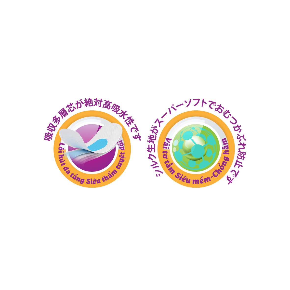- Thành phần : Vải không dệt, hạt siêu hút nước (SAP), bông cellulose, chun sợi, màng PE, polyme kết dính, giấy không dính, keo...