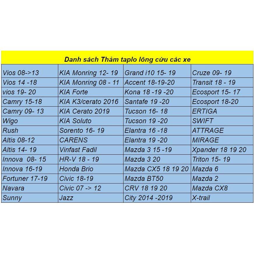 SHOP CÓ RẤT NHIỀU DÒNG THẢM TAPLO. NẾU BẠN K TÌM THẤY CHO XE CỦA BẠN. VUI LÒNG NHẮN TIN CHO CHÚNG TÔI ĐỂ ĐƯỢC GỬI LINK SP BẠN CẦN. XIN CẢM ƠN! Thảm Taplo