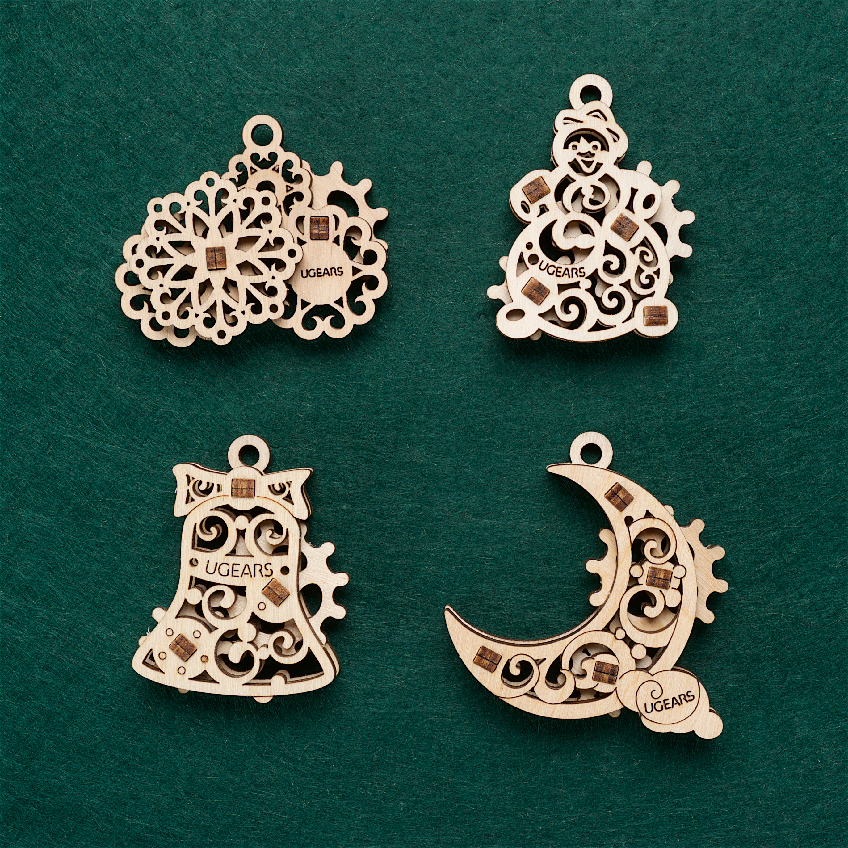 ✨Mô Hình Gỗ Cơ Khí - U-Fidgets-Gearsmas - Set 4 tấm Trang trí Noel, sản phẩm chính hãng Ugears, nhập khẩu nguyên bộ từ EU, Fidget, DYI