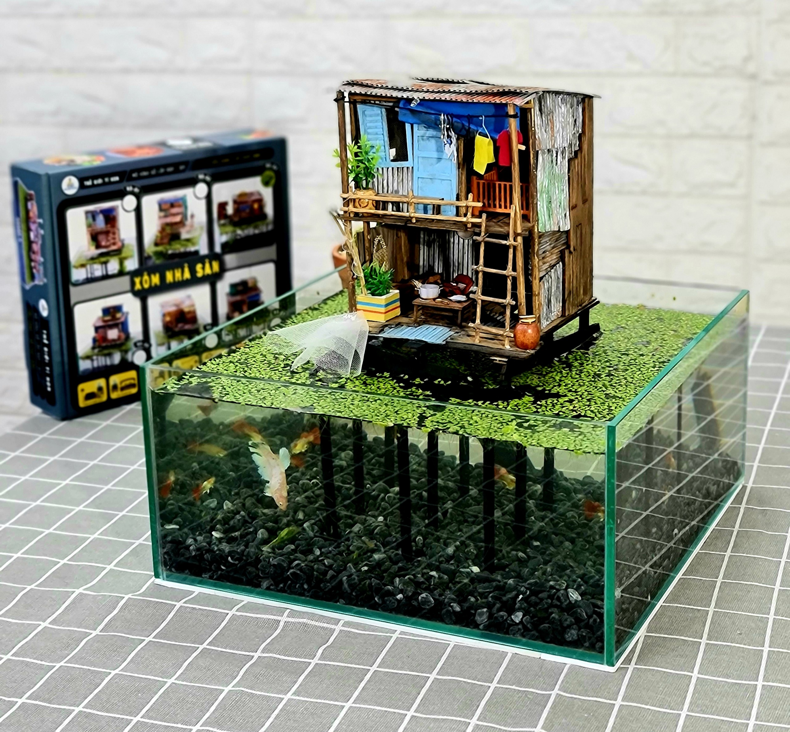 ✨Mô Hình Gỗ Sài Gòn Xưa Tí Hon Ký Ức Tuổi Thơ - Thế Giới Tí Hon - Xóm Nhà Sàn - NS01