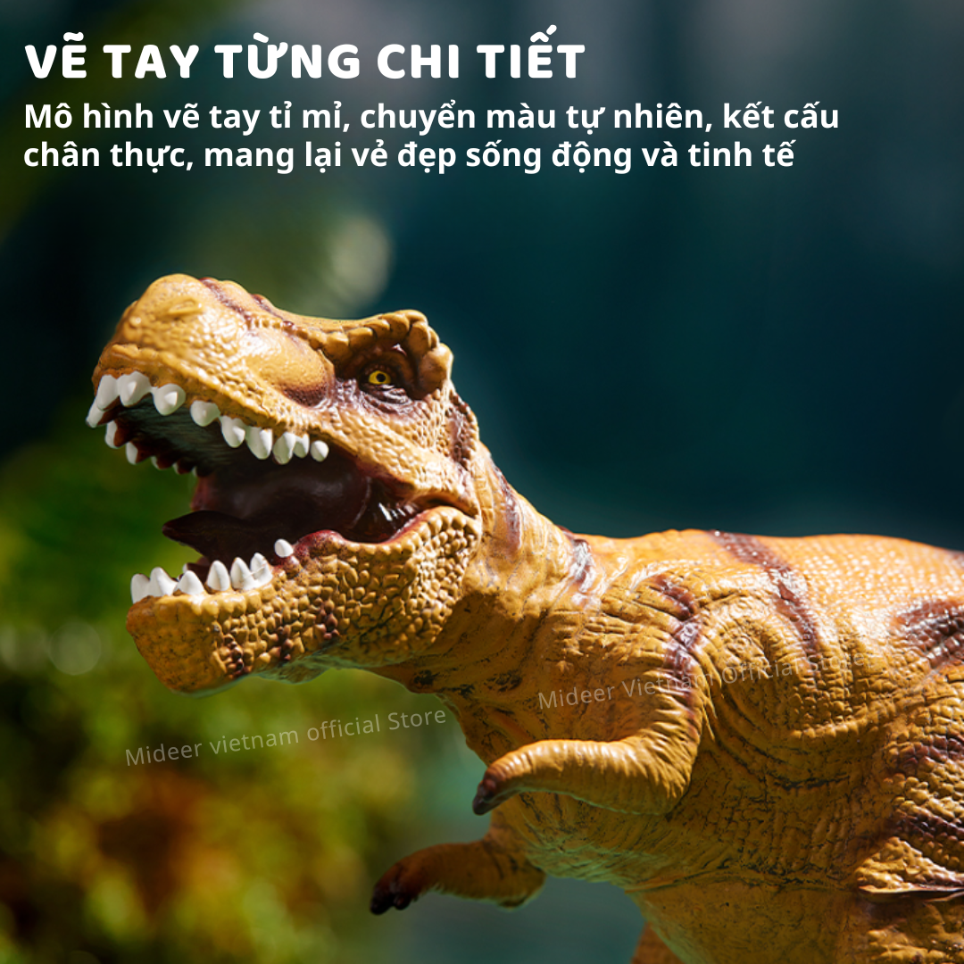 - VẼ TAY TỪNG CHI TIẾT Mỗi mô hình được vẽ tay tỉ mỉ với độ chuyển màu tự nhiên và kết cấu chân thực, mang lại vẻ đẹp sống động và tinh tế cho mô hình khủng long.