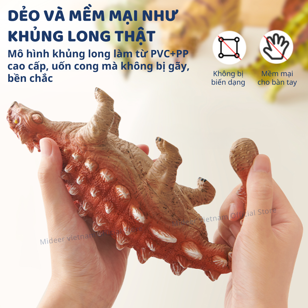 - DẺO VÀ MỀM MẠI NHƯ KHỦNG LONG THẬT! Làm từ chất liệu PVC+PP cao cấp nên mô hình khủng long này không dễ bị biến dạng. Con có thể uốn cong mô hình mà không bị gãy.