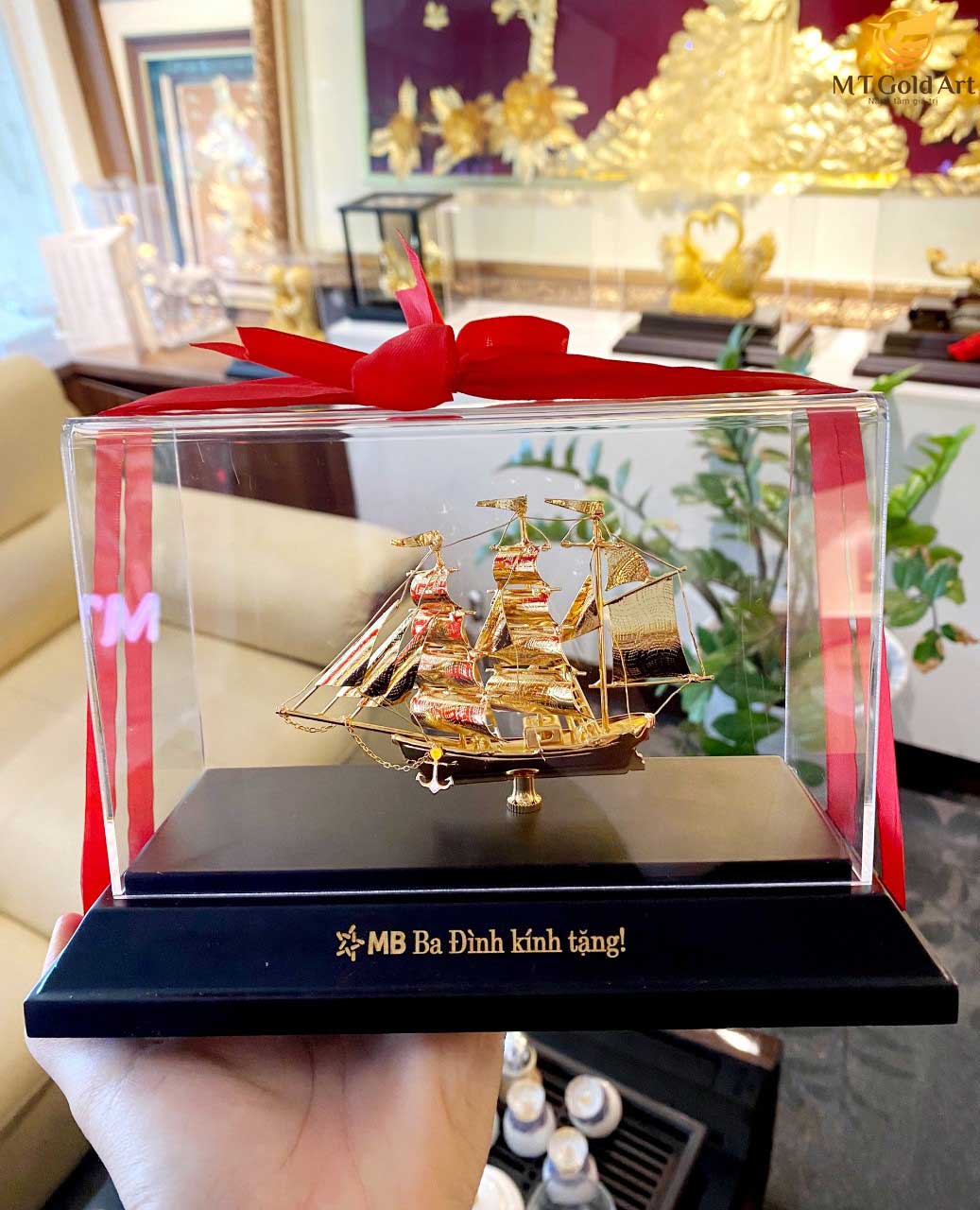 ✨Mô hình thuyền buồm mạ vàng MT Gold Art sze s- hàng chính hãng, quà tặng danh cho sếp, khách hàng, đối tác