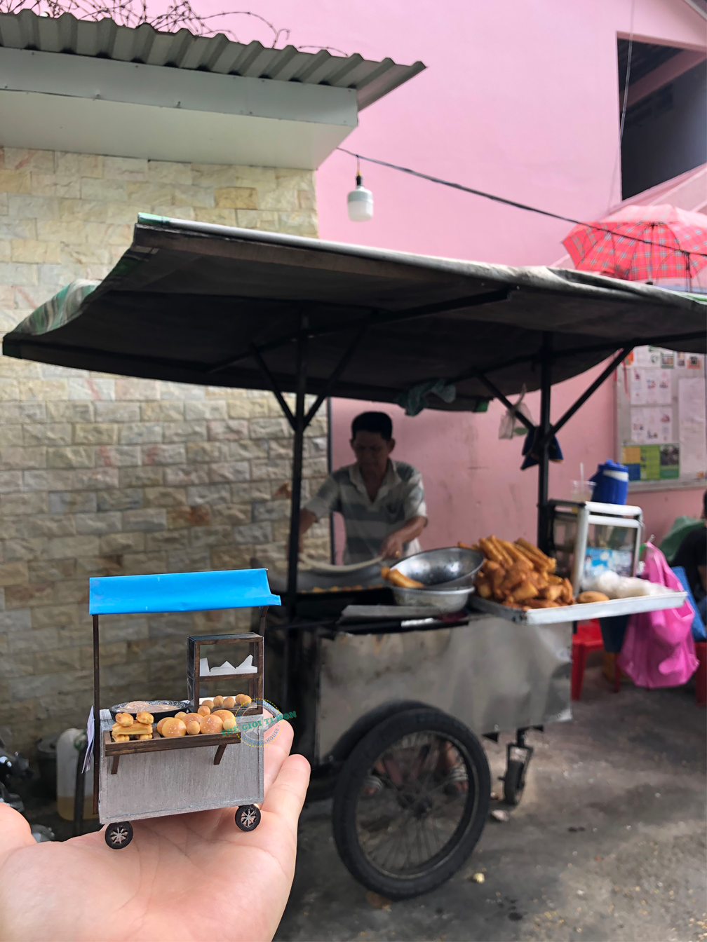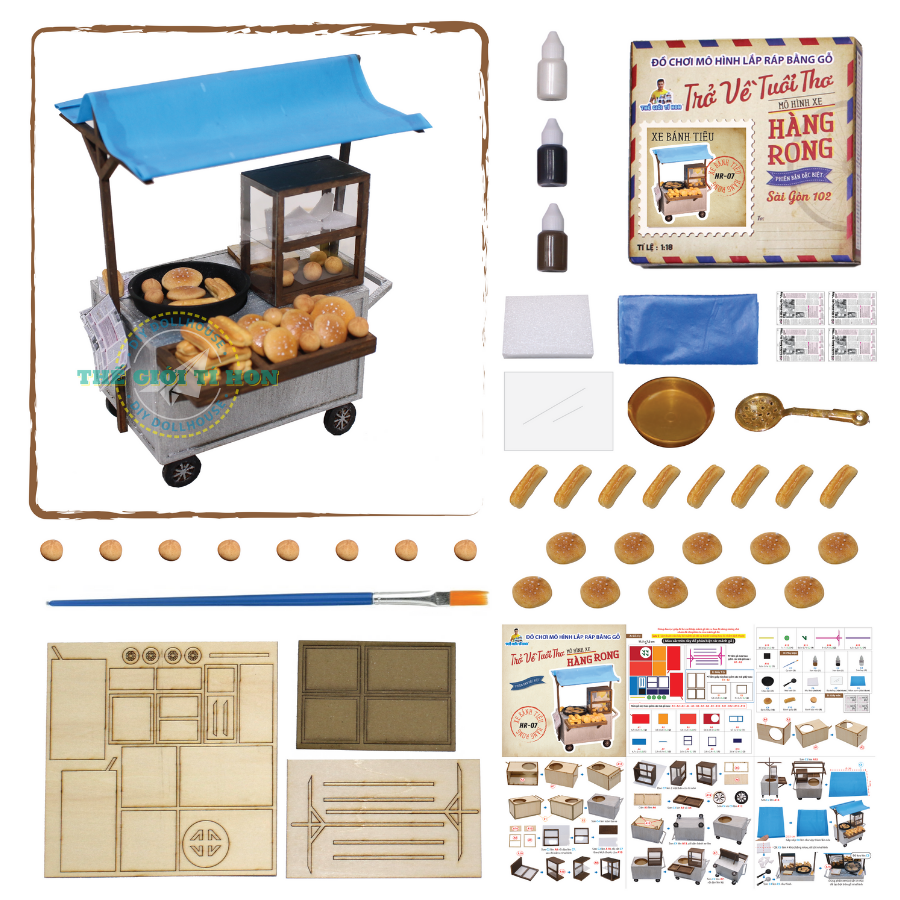 Khách lưu ý: Sản phẩm chưa lắp ráp, chưa bao gồm keo+ dụng cụ+ tượng, không áp dụng đổi tên bảng hiệu Mô Hình Xe Hàng Rong Sài Gòn Thu Nhỏ - Xe Bánh