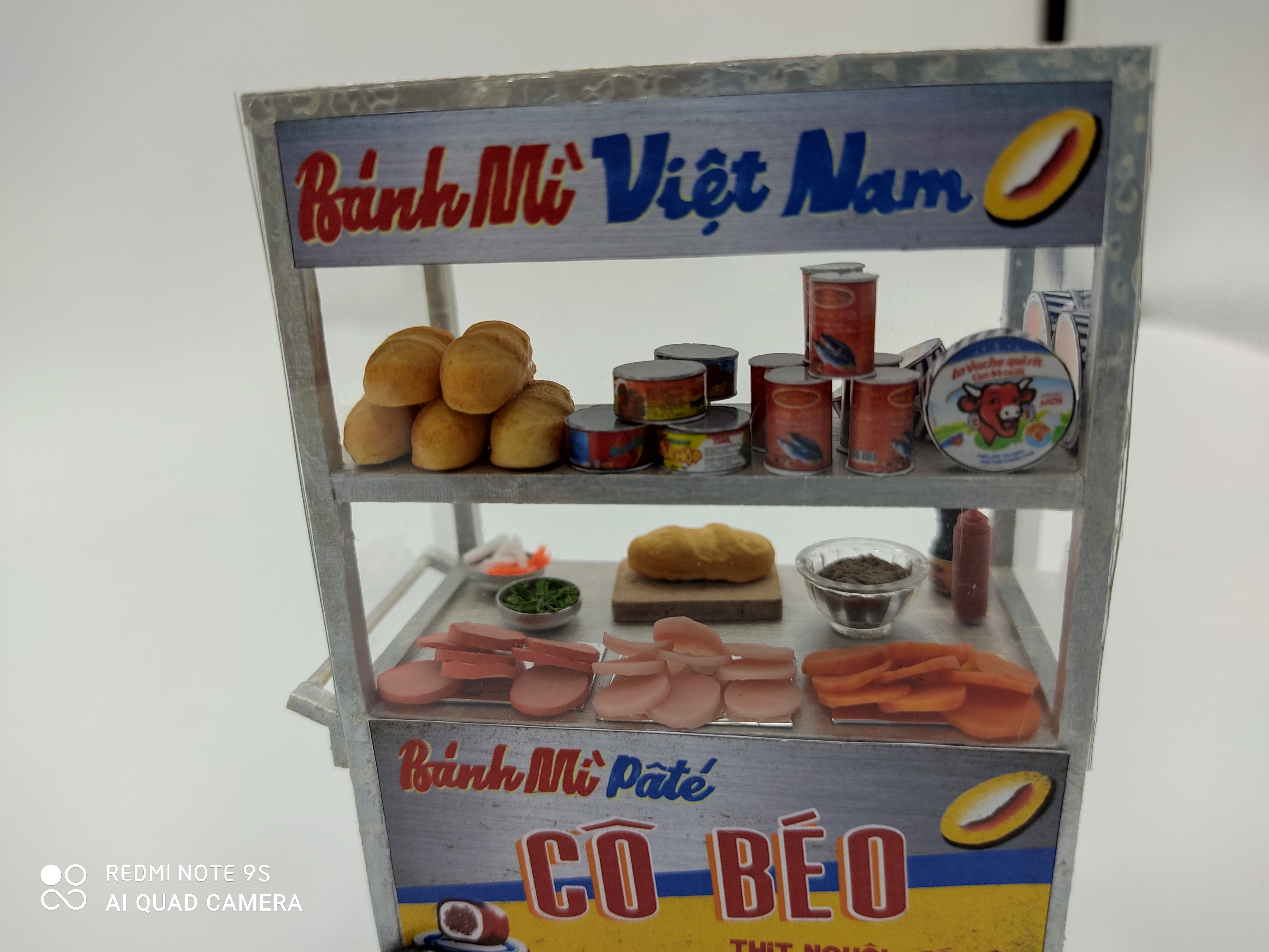 Khách lưu ý: Sản phẩm chưa lắp ráp, chưa bao gồm keo+ dụng cụ+ tượng, không áp dụng đổi tên bảng hiệu Mô Hình Xe Hàng Rong Sài Gòn Thu Nhỏ - Xe Bánh